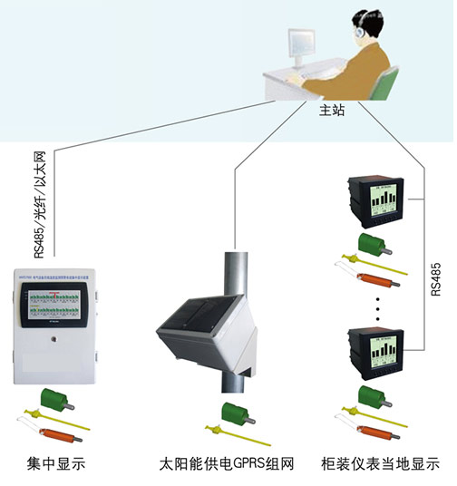 测温主站完成数据的总体显示,并设置有超温报警功能。
